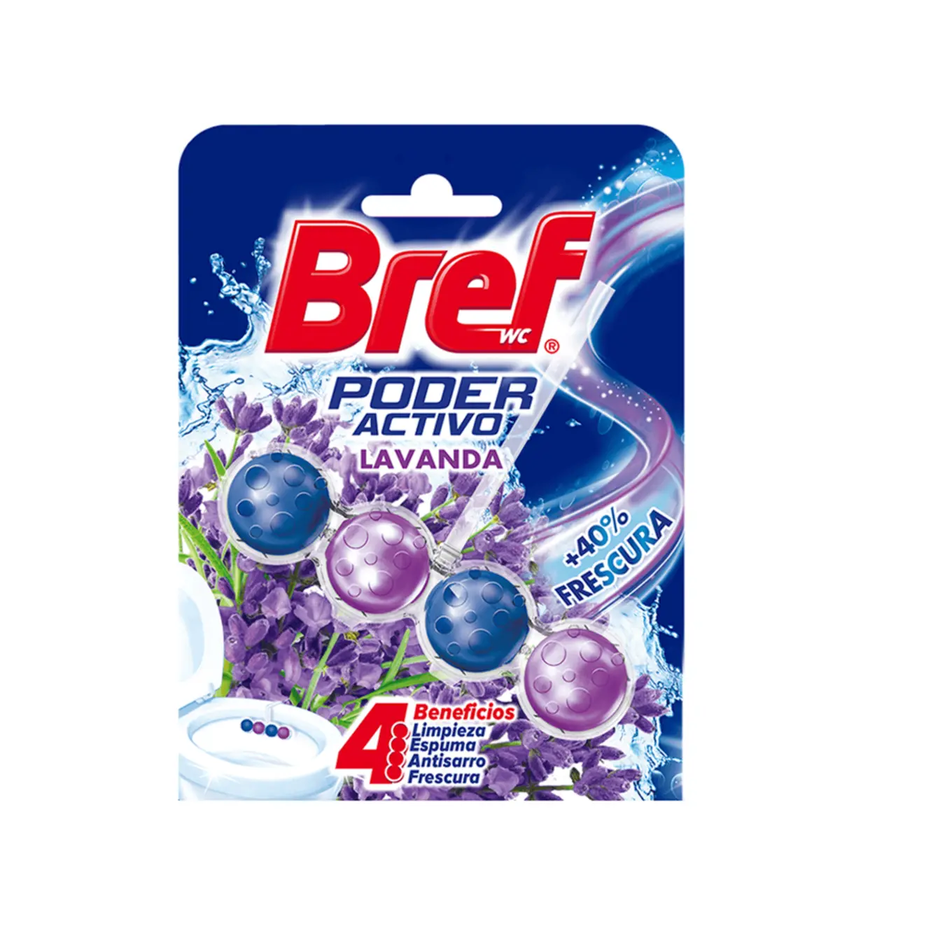 Con su exclusiva fórmula de 4 funciones, Bref Poder Activo evita residuos de sarro, proporciona espuma limpiadora, protección contra la suciedad y frescura adicional para su inodoro.