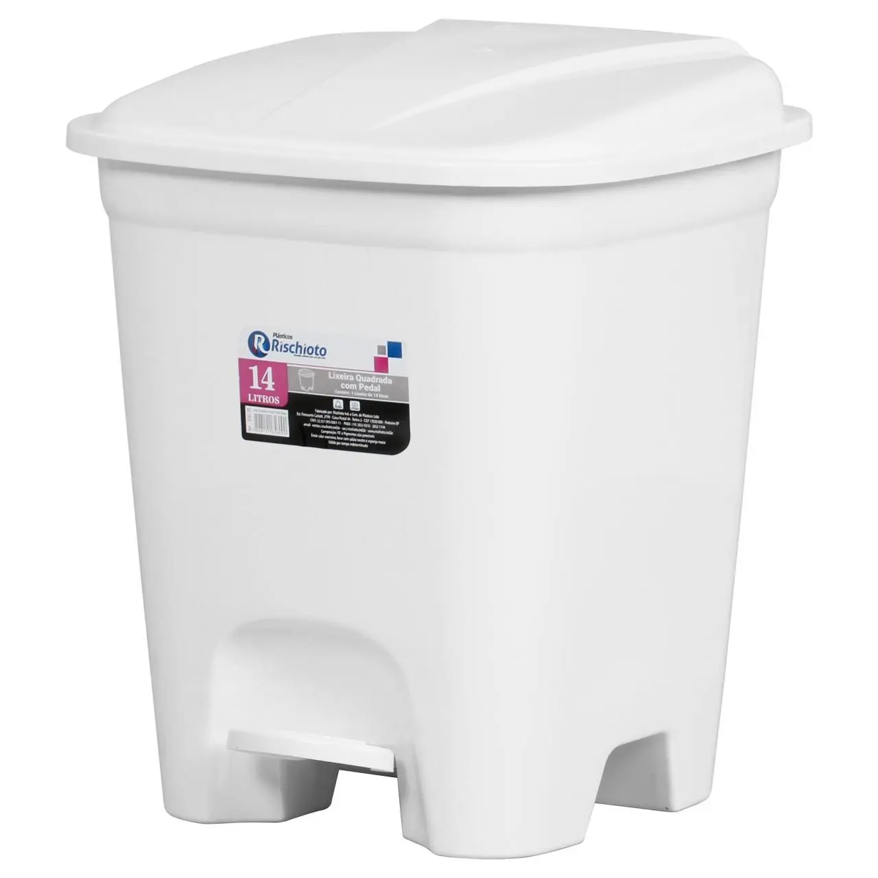 Basurero de pedal cuadrada de 14 L, color blanco.Practicidad, higiene y eficiencia para tu día a día, es la solución ideal para mantener tus espacios limpios y organizados con la máxima comodidad. Su apertura con pedal evita el contacto directo con las manos, lo que proporciona mayor seguridad e higiene al manipular los residuos.