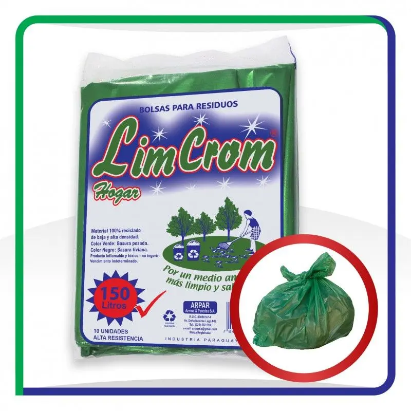 Bolsa resistente de gran capacidad, ideal para desechos pesados o voluminosos. Fabricada con material reforzado que evita roturas y fugas, asegurando mayor durabilidad y seguridad en su uso.