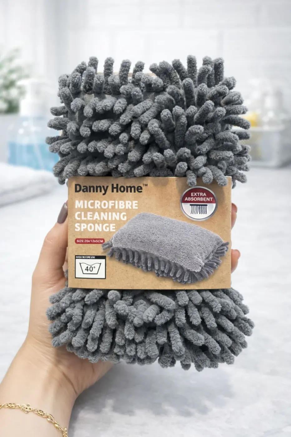 La esponja o paño de microfibra Danny Home se destaca por ser suave, súper absorbente y libre de pelusas, ideal para la limpieza eficiente de diversas superficies.
