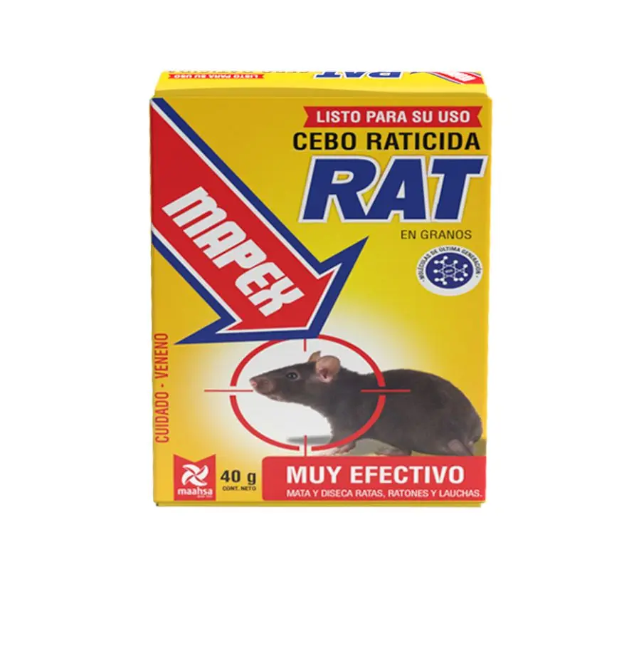 Rodenticida, eficaz para eliminar roedores por su alta palatabilidad. Mata y diseca a ratas, ratones y lauchas.De uso doméstico, industrial y rural