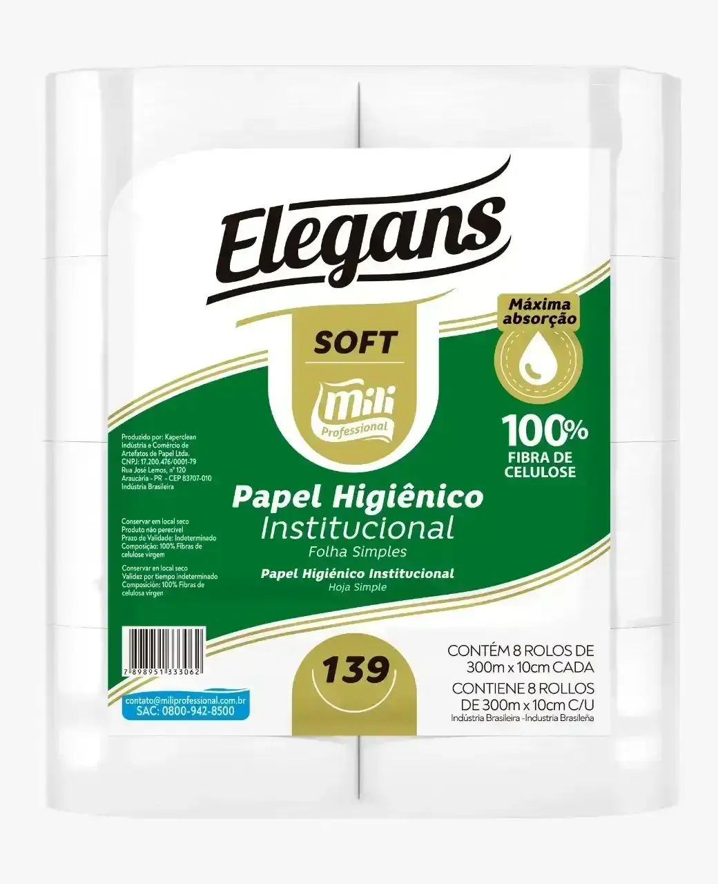 El Papel Higiénico Mili Elegans Soft combina suavidad, resistencia y gran rendimiento. Hecho con 100% celulosa, ofrece una limpieza cómoda y segura. Su formato de 300 metros por rollo rinde más y es perfecto para el hogar, oficinas o comercios que buscan calidad y economía en cada uso.