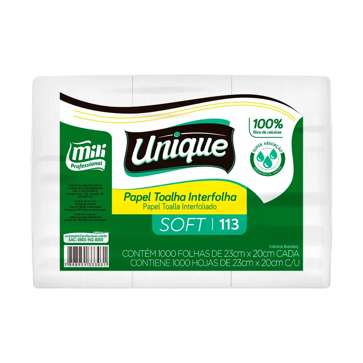 El Papel Toalla Intercalado Mili Unique combina suavidad, absorción y practicidad para el cuidado diario. Fabricado con 100% celulosa virgen, seca las manos de forma rápida y delicada sin dejar residuos. Ideal para baños, cocinas u oficinas, su textura suave y resistente garantiza una limpieza eficiente y cómoda en todo momento.