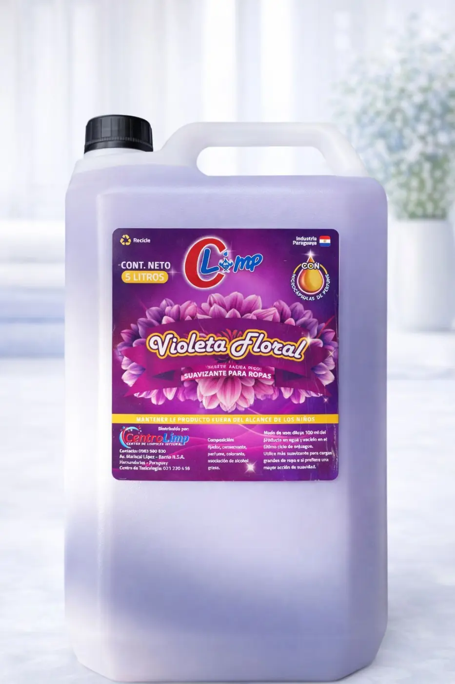 El Suavizante Concentrado CLIMP de 5 litros es un acondicionador textil de alto rendimiento que suaviza, elimina la estática y perfuma intensamente las prendas con aroma a Flores Violetas.